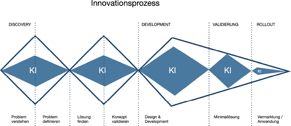 Unsere Expertise reicht über den Einsatz von KI im Innovationsprozess hinaus: Wir entwickeln gemeinsam mit Ihnen innovative Produkte, Dienstleistungen und Prozesse, die KI integrieren oder vollständig darauf aufbauen.